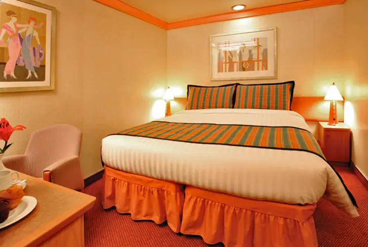Le cabine interne sono ideali per chi desidera stare attento al prezzo e vivere al massimo gli ambienti della nave. All’interno troverai: - Aria condizionata regolabile con termostato - TV interattiva satellitare a schermo piatto - Biancheria cambiata regolarmente (lenzuola e asciugamani) - Minibar e Room Service 24 ore su 24 (a pagamento) - Steward sempre disponibile - Cassetta di sicurezza - Connessione Wi-Fi (a pagamento) - Asciugacapelli