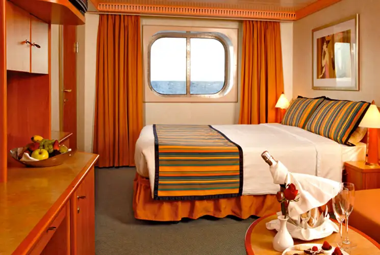 Le cabine esterne regalano ai propri ospiti paesaggi spettacolari e illuminano di luce naturale la cabina rendendo ancora più speciale la crociera. Le cabine esterne sono fornite di: - Finestra Vista Mare - Aria condizionata regolabile con termostato - TV interattiva satellitare a schermo piatto - Biancheria cambiata regolarmente (lenzuola e asciugamani) - Minibar e Room Service 24 ore su 24 (a pagamento) - Steward sempre disponibile - Cassetta di sicurezza - Connessione Wi-Fi (a pagamento) - Asciugacapelli