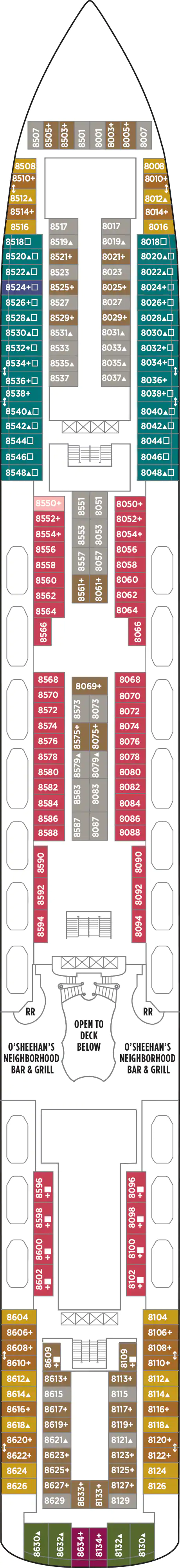 Una Cabina interna Sail Away garantisce una Cabina interna o superiore! La tua cabina potrebbe trovarsi su qualsiasi ponte e assegnata fino a un giorno prima dell'imbarco.
