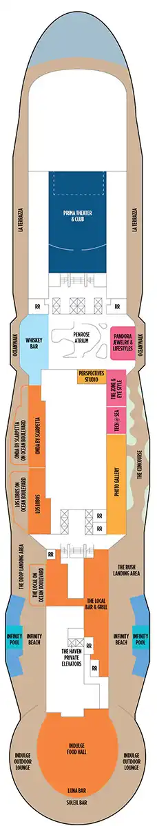 È la nave da crociera più spaziosa nelle categorie premium e contemporanee, con maggiore spazio esterno sul ponte principale e sistemazioni più ampie di qualsiasi nuova costruzione. Ocean Boulevard avvolge il ponte di oltre 4.000 metri quadrati, consentendo agli ospiti cene all'aperto ed esperienze come Infinity Beach, con due piscine a sfioro. Oppure Oceanwalk, dove due ponti di vetro fanno sentire gli ospiti come se stessero camminando sull'acqua.