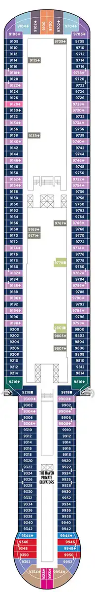 SERVIZI Maggiordomo 24 ore su 24 Servizio concierge Solarium con piscina e cameriere esclusivi Vasca idromassaggio e solarium privati Priorità d'imbarco e sbarco Accompagnatore personale sia a bordo della nave che a terra L'esclusivo ristorante e salone Haven Prenotazioni prioritarie nei Ristoranti di Specialità Servizio in cabina Suite 24 ore su 24 Servizio in camera Raffinata biancheria da letto e materasso pillow-top Soffice accappatoio, pantofole e altri prodotti Vino frizzante/frutta all'imbarco Deliziose prelibatezze con consegna serale Inviti a colazioni/pranzi esclusivi Cocktail party con gli ufficiali di bordo